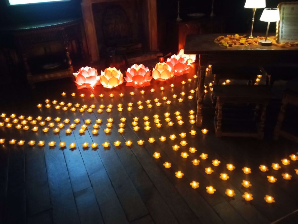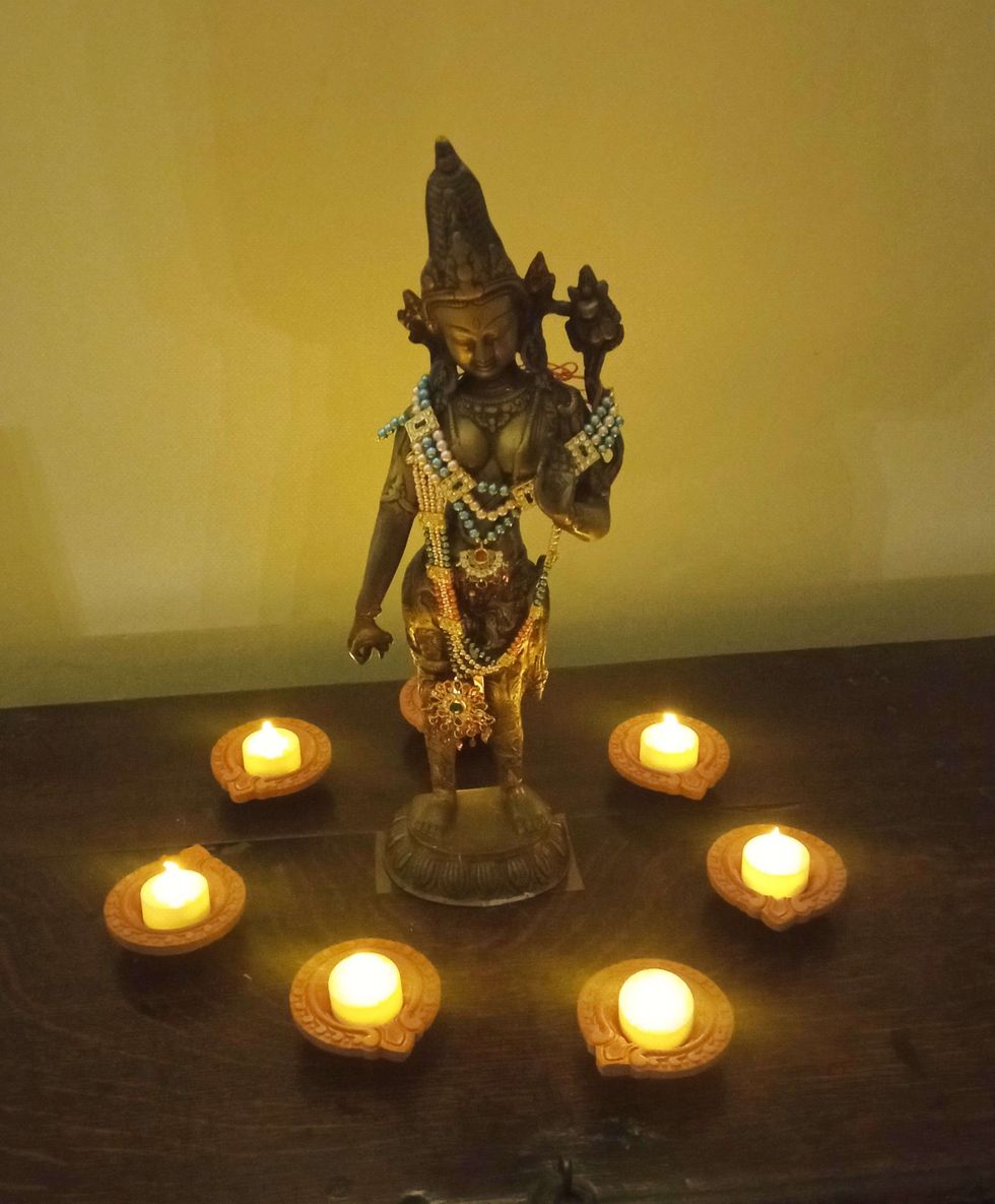 Simran Sandhu and Emily Ghassempour And , rows of diyas light up the interiors