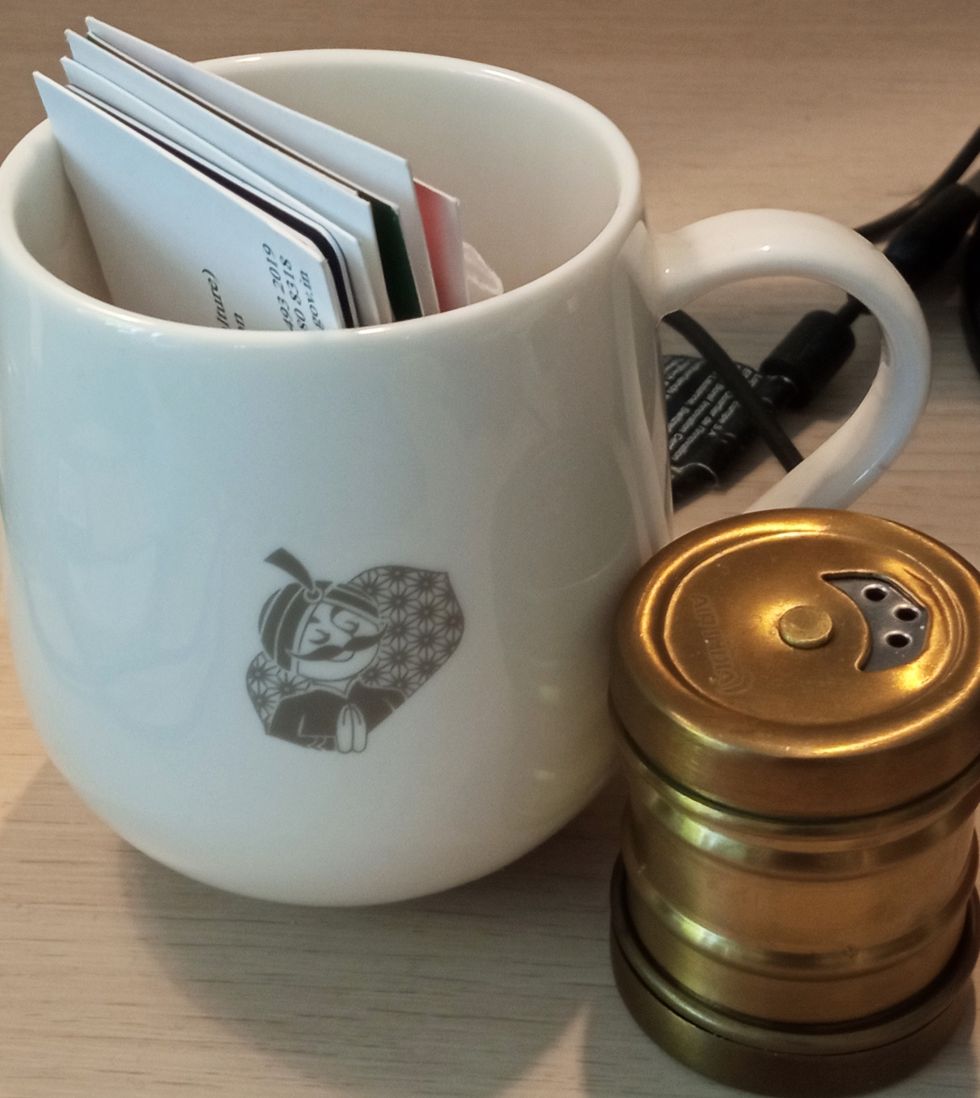 And in the kitchen I have one of Air India’s new salt and pepper dispensers designed in the shape of a traditional Indian tiffin box. That, too, I am happy to say, was gifted to me.