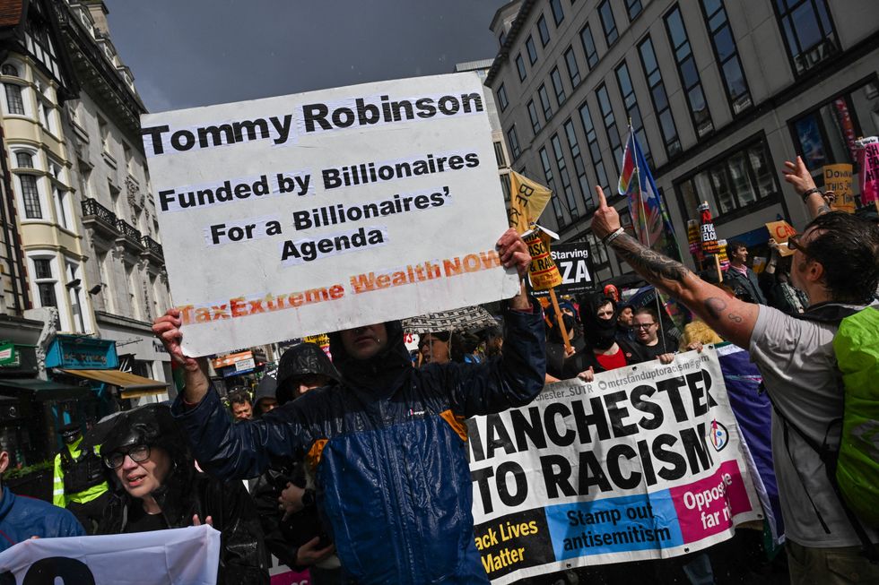 The “Stand Up to Racism” counterprotest drew around 5,000 people. Teachers, activists and faith groups marched through nearby streets, holding placards calling for unity and chanting “refugees are welcome here”. One participant, teacher Ben Hetchin, said: “The idea of hate is dividing us and I think the more that we welcome people, the stronger we are as a country.”