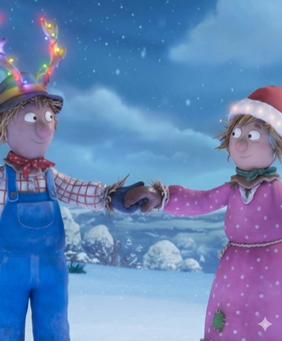 The Scarecrows’ Wedding tells the story of two devoted scarecrows planning their big day. Trouble appears when Reginald Rake shows up, threatening to ruin everything. The half-hour animation stars Rob Brydon as Reginald, Jessie Buckley as Betty, Domhnall Gleeson as Harry, with Sophie Okonedo narrating.