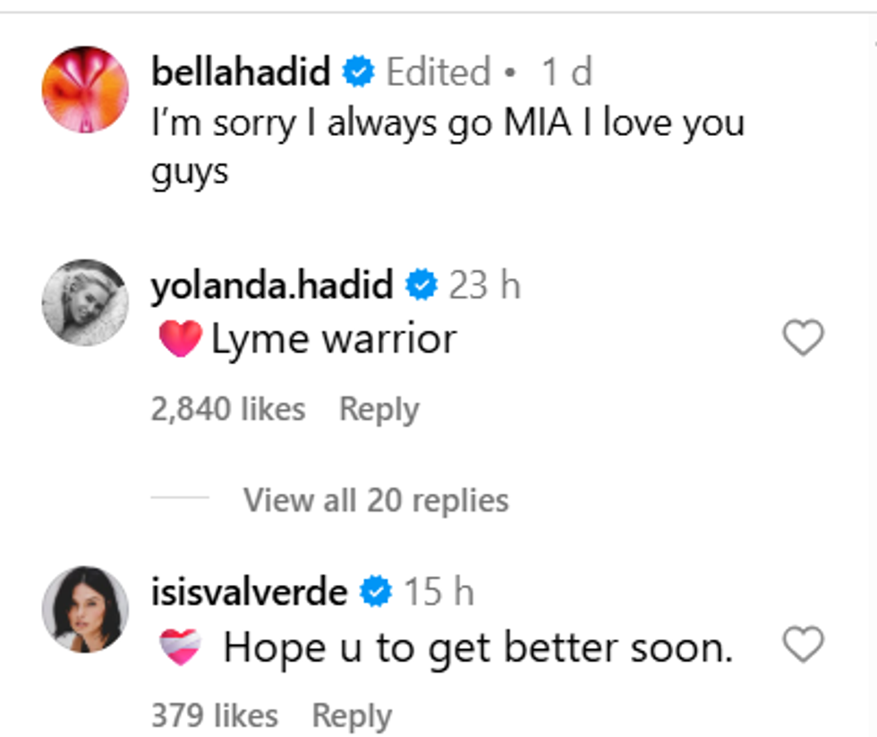 They reacted immediately and with full support. This was not a case of silent worry; her family publicly rallied in the comments. Her sister and fellow model, Gigi Hadid, wrote, “I love you! I hope you feel as strong and good as you deserve, soon.” Their mother, Yolanda Hadid, who has her own very public battle with the same illness, simply commented “Lyme warrior”, heavily implying the reason for this latest health scare. That one phrase from Yolanda essentially confirmed what many were thinking, turning the concern into a wider discussion about the family's shared health struggle.