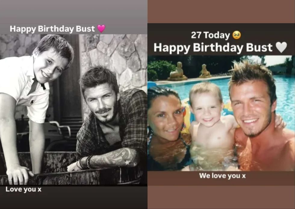 Both parents posted separate messages on Instagram on Tuesday morning, sharing throwback photographs in tribute. David uploaded an older image of himself, Brooklyn and Victoria in a swimming pool, captioning it, “27 today, Happy Birthday Bust. We love you x.” He also shared a black and white picture of himself with Brooklyn as a child.