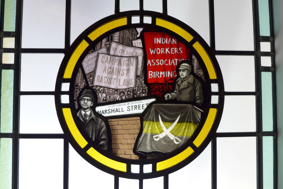 The first window shows young Indians on a train out of the countryside, searching for more opportunities elsewhere. The second shows the new arrivals working in the foundries and factories of the West Midlands. The third shows the community playing cards and drinking beer. And the fourth shows how minority communities fought back against racism – including forming the Indian Workers Association, who were so influential they hosted Malcolm X for a visit to Smethwick just days before his death.