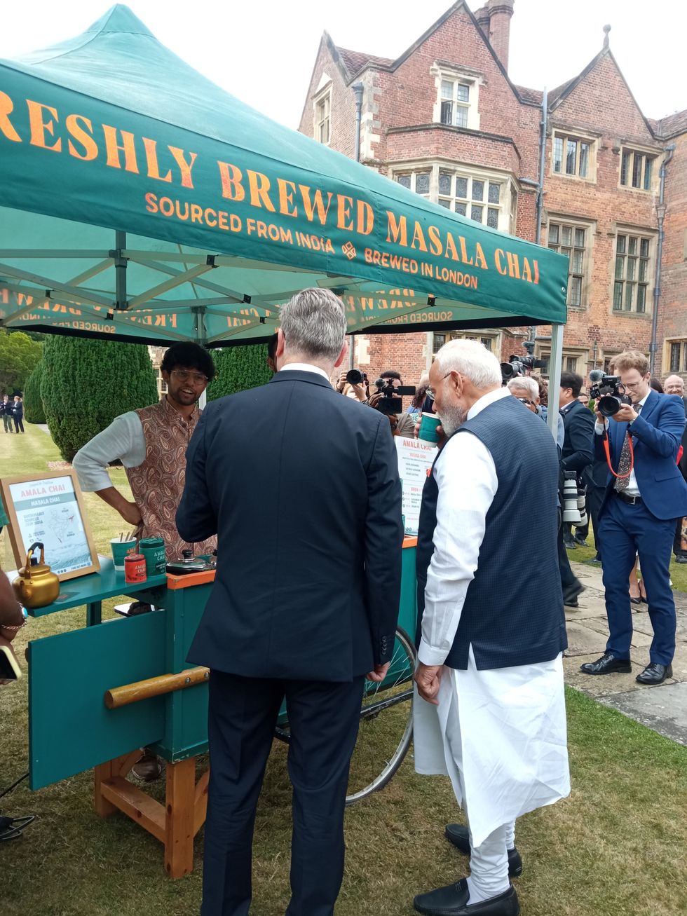 AS AKHIL PATEL handed over a cup of masala chai to Narendra Modi in the grounds of Chequers on Thursday (24), he cheekily told the Indian prime minister: “From one chaiwalla to another!”
