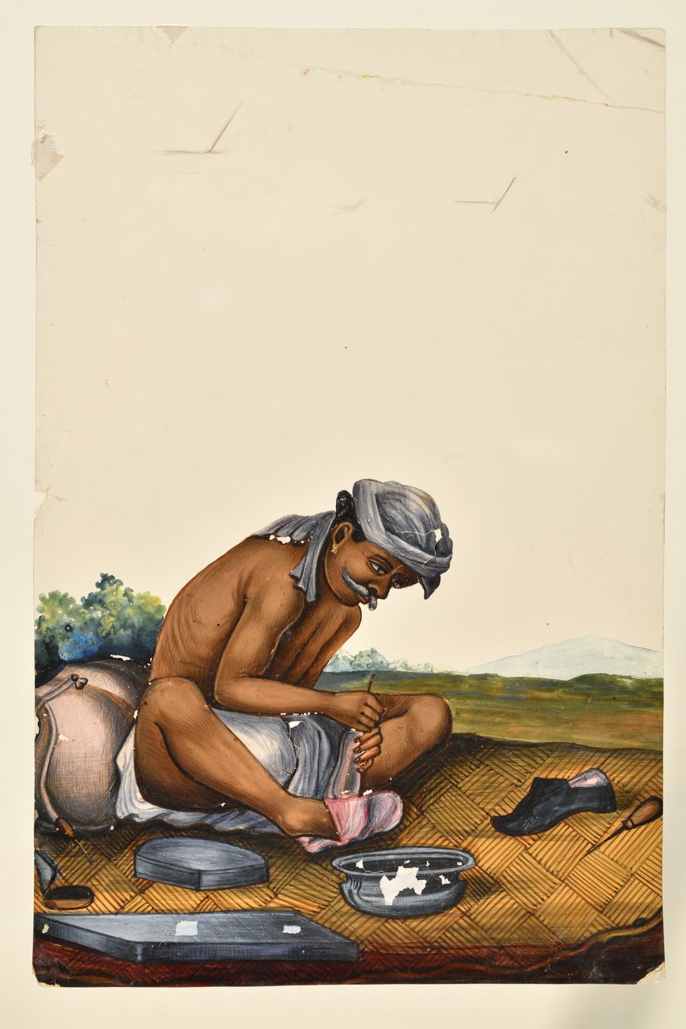 In contrast to the maharajahs and emperors depicted in Mughal paintings, the “common man” was featured in mica painting. There was a change of patrons from rulers to East India Company officials.