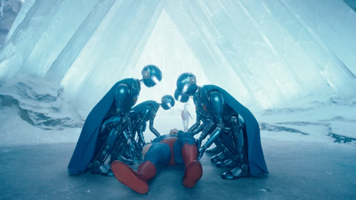 Revealed during Warner Bros.’ CinemaCon presentation and now available online, the extended trailer leans into a quirky, even offbeat tone. Superman, played by David Corenswet, is in rough shape and unable to move. As Krypto loyally drags him back to the Fortress of Solitude, things take an unexpected turn. Instead of crystal tech and solemn silence, Superman is greeted by a squad of cape-wearing robot medics who spring into action to patch him up. One scene even shows them harnessing sunlight to heal his wounds, a visual nod to Superman’s solar-powered strength.