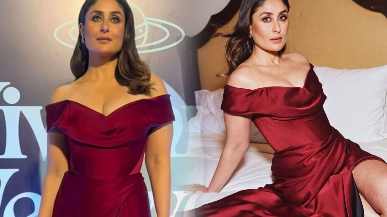Kareena Kapoor, known for her impeccable fashion sense, was the cynosure of all eyes as she arrived in a stunning red gown featuring a thigh-high slit, corset bodice, and off-shoulder sleeves. Her outfit exuded elegance and sophistication, complemented by her gold-hued heels, which added a touch of glamour to her look.