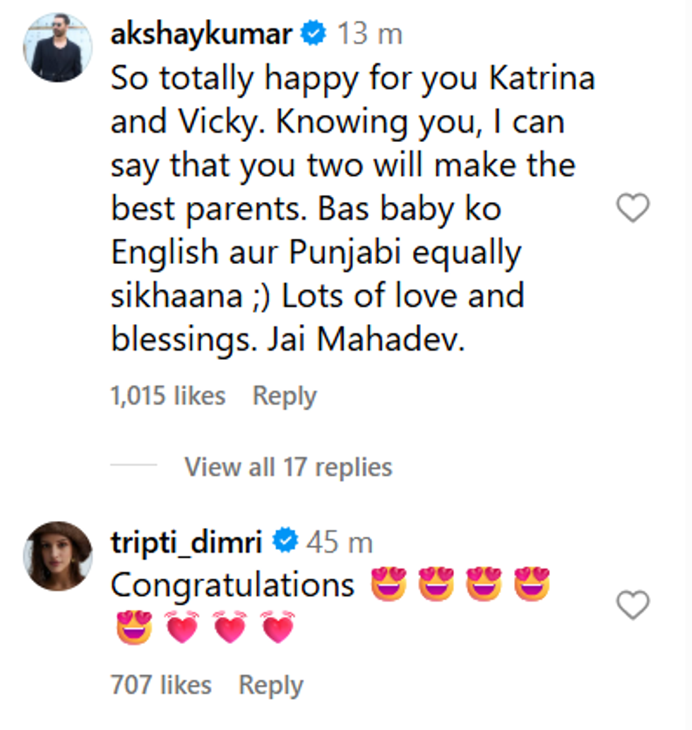 The comment section on Instagram turned into a celebration. From fellow actors such as Neha Dhupia’s excited all caps message to soon to be father Rajkummar Rao’s congratulations, the industry showed its support. Fans were equally thrilled, speculating on whether a mini Katrina or Vicky is on the way. The overwhelming sentiment was one of shared happiness for the couple.
