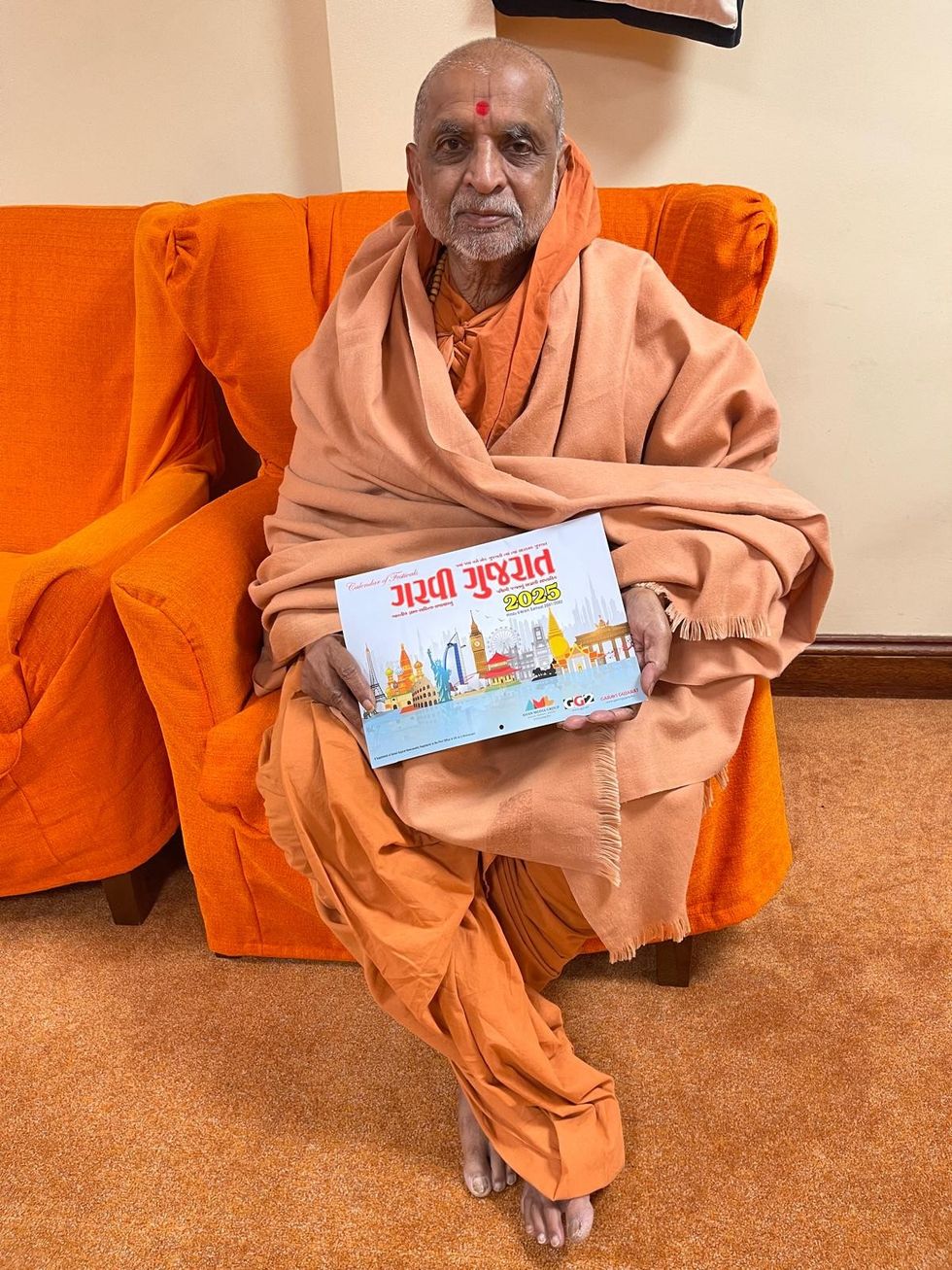 During a visit to the Shri Kutch Satsang Swaminarayan Temple in Harrow, Swamiji was presented with a copy of Garavi Gujarat, a leading publication within the global Gujarati community. He acknowledged the publication’s longstanding efforts in preserving the cultural identity and heritage of Gujaratis living abroad.