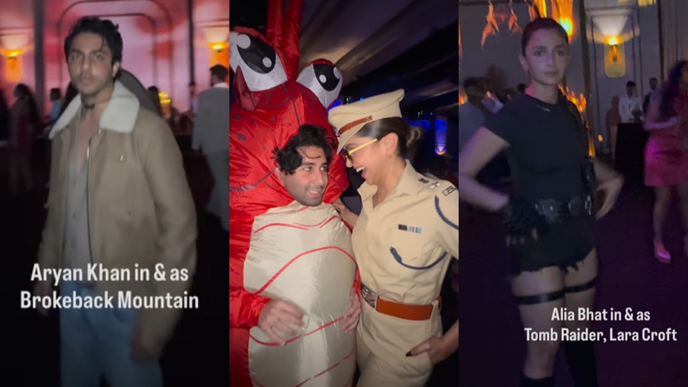 Orry’s video shows Nita Ambani, Alia Bhatt, Deepika Padukone and Aryan Khan at Bollywood’s Halloween party             Instagram screengrab/ Aryan Khan as Jake Gyllenhaal’s cowboy character from Brokeback MountainInstagram screengrab/