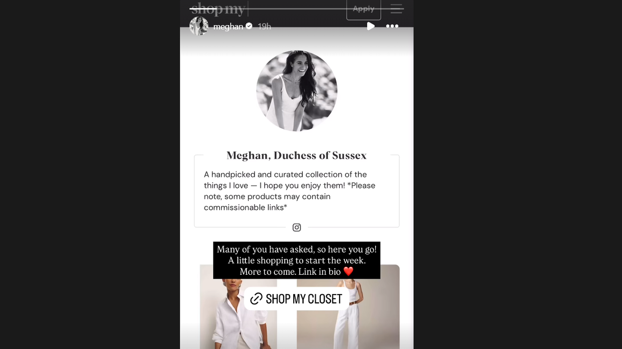 The ShopMy platform, designed for high-profile personalities, allows users to monetise their recommendations, with commission rates reaching up to 30%. Meghan described the collection as a “handpicked and curated selection of the things I love,” adding that she has often been asked to share her style insights.