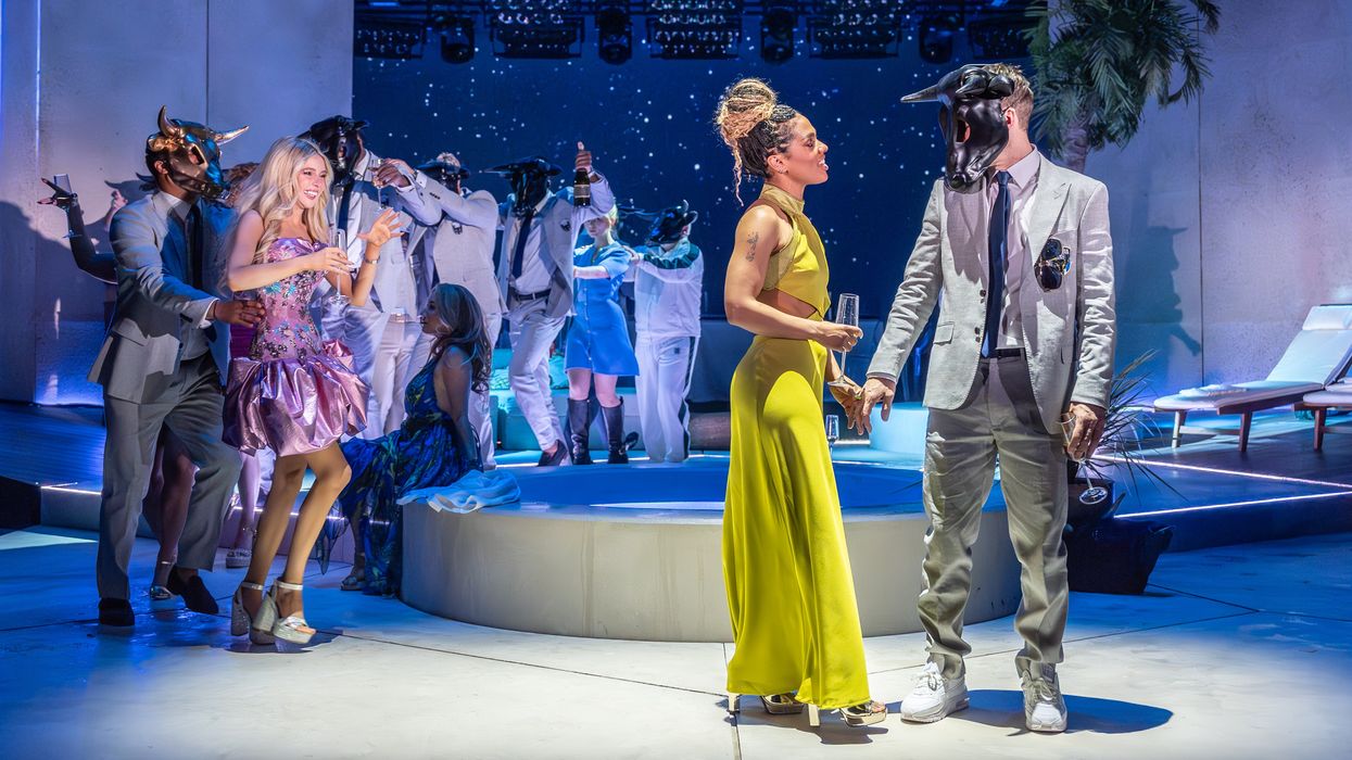 Instead of the idyllic Messina of the Jacobean age, we are immediately thrust into a football stadium of the 21st century – full of gratuitous press analysis, an insatiable interest in celebrity, and the dangers of public intrusion in the form of social media. We have modernity expressed in costume and pop music, in half-naked boisterous footballers frolicking in a communal tub, and in WAGs behaving badly.