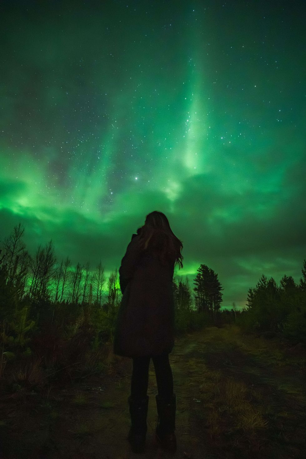 In total, we visited six locations, each offering a slightly different view. From wide clearings to shadowed forest edges, the lights appeared in several shapes and intensities. Every stop felt as though we were experiencing a new version of the same spectacle. The consistency of sightings reinforced a simple truth: the success of a Northern Lights tour often depends on the skill and persistence of the guide.