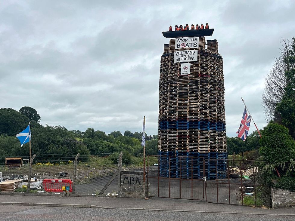The model at the centre of the controversy showed 12 dummies dressed in life jackets inside a dinghy placed on top of the bonfire, with a banner reading “Stop the Boats.”