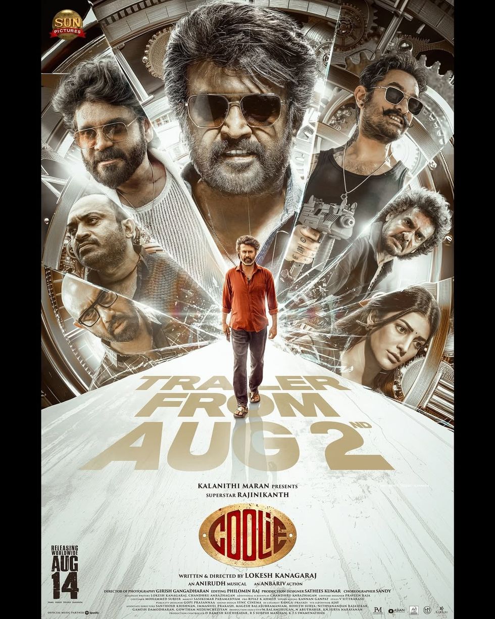 - Coolie, starring Rajinikanth and directed by Lokesh Kanagaraj, releases on 14 August.