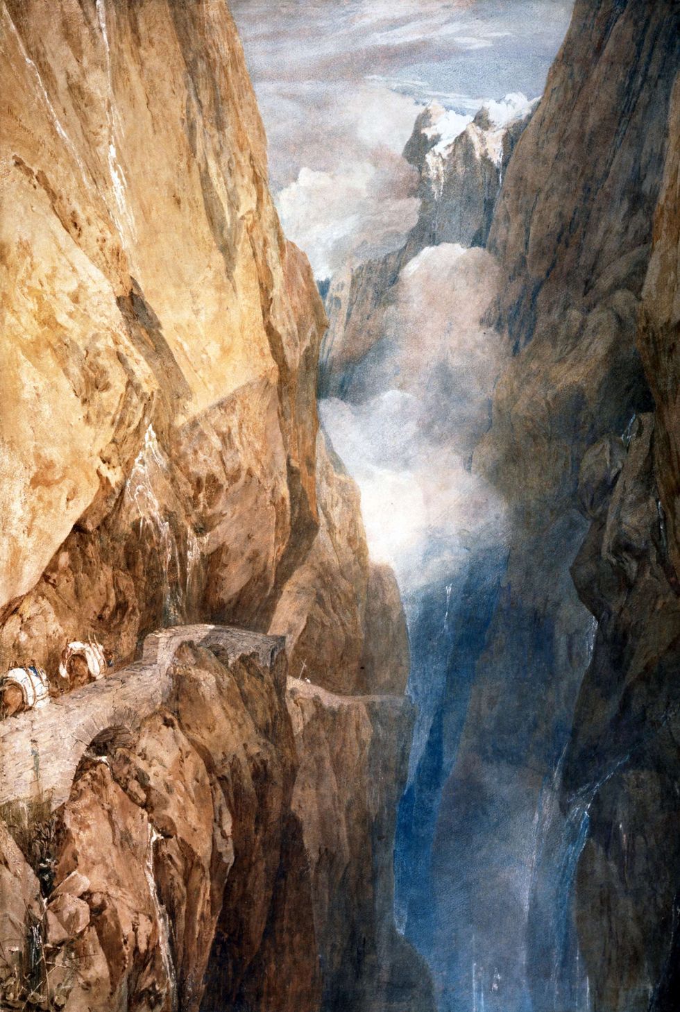 “A pause in hostilities in 1802 meant that the 27-year-old Turner could finally go abroad. Journeying through Paris and exploring its art collections, he made his way to the Alps. His tour took in France, Switzerland and a short excursion to Italy's Val d'Aosta. It did not disappoint. Turner’s experiences of the region’s magnificent glaciers, peaks and passes were revelatory. They sharpened his interest in the ‘sublime’—making pictures that generated the strongest possible emotion, close to terror. Later, he described this tour as ‘no small wonder’.