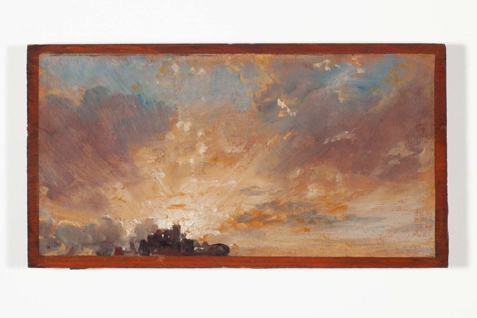 “The artists both looked backwards to create new works out of old. Two unfinished paintings are prime examples of this tendency. Both are based on earlier compositions they had shared in printed manifestos on the possibilities of landscape painting. Stoke-By-Nayland is a last investigation of light and shade in nature, Constable’s lifelong preoccupation. Norham Castle shows the evolution of Turner’s vision for landscape. Despite their apparent differences, these late works reflect their makers’ drive to convey the spirit of a place and their fascination with painting light.”