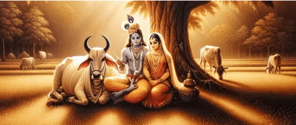 Around 10,000 years ago, our ancestors, including those in India, advanced agriculture using knowledge, tools, and animals such as cows, bulls, water buffaloes, and horses. Among domesticated animals, cows and bulls were most prominent. Rishis (sages) emphasized preventing cruelty toward cattle as a standard for protecting all animals. Associating cattle with Krishna served as a benchmark for others to follow.