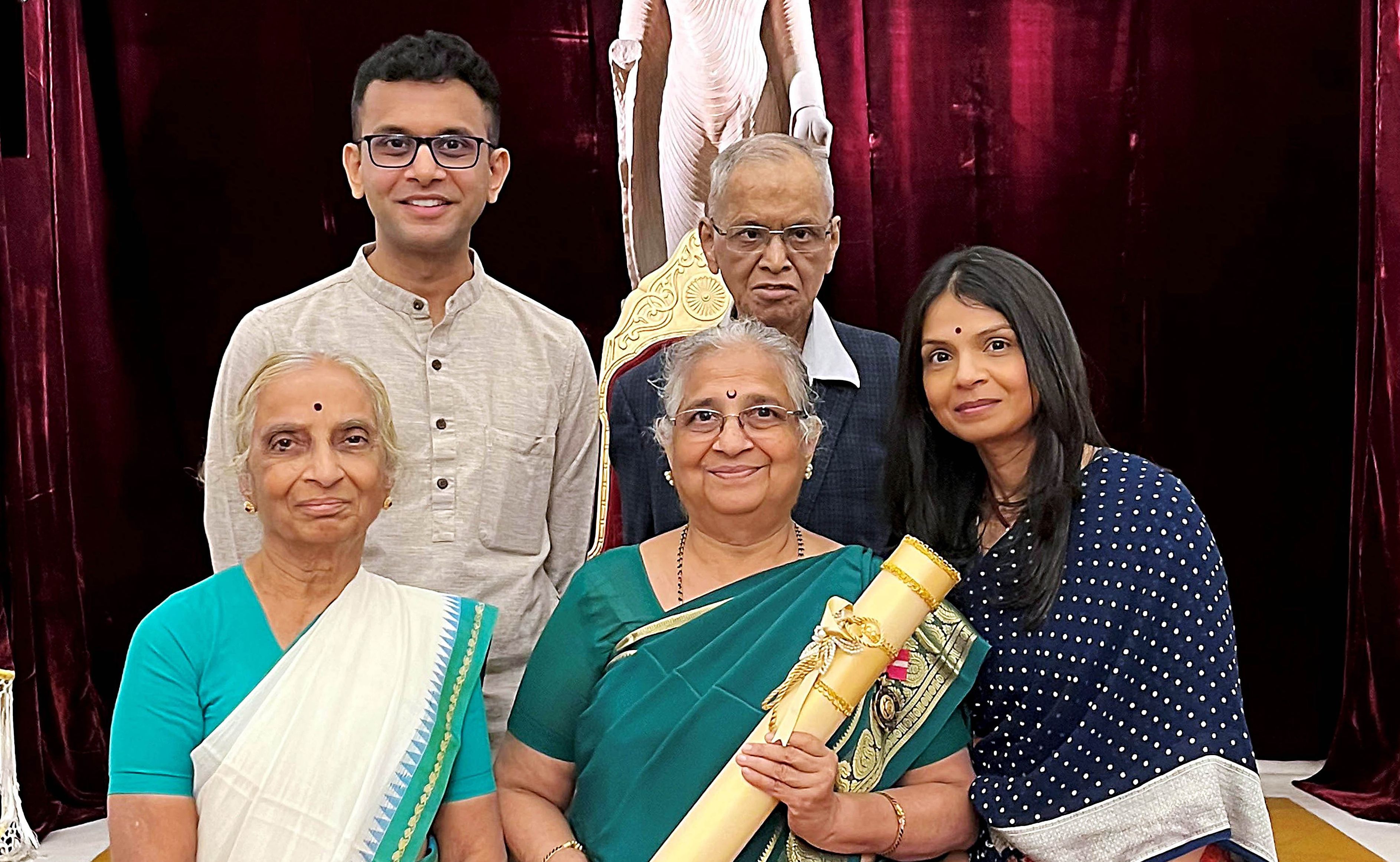 Sudha said: “Akshata and Rohan grew up simply with us in a twobedroomed house in Bangalore [now Bengaluru], where we had moved from Pune. Birthdays were not big celebrations. I sent their birthday money to hospitals to buy equipment. They didn’t like it, but I knew one day they would understand. The steel instrument trays that Akshata’s money bought are still used in the government hospital 40 years later.”