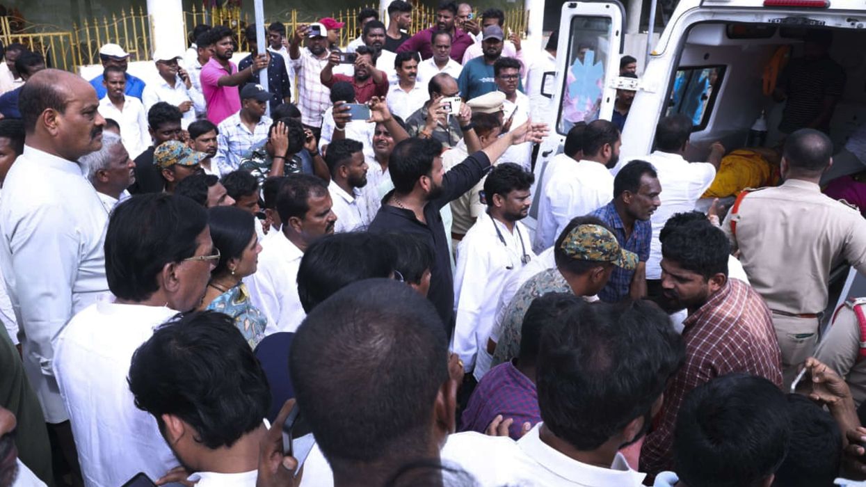 Andhra Pradesh minister K. Atchannaidu visits the spot after a stampede occurred at Venkateswara temple, at Kasibugga in Srikakulam district, Saturday, Nov. 1, 2025. (PTI Photo)