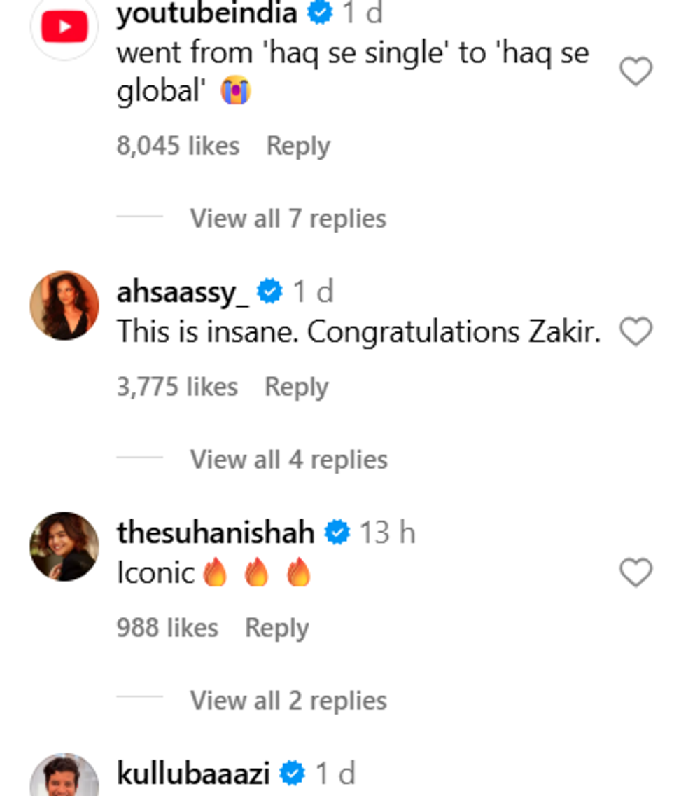 Vir Das, one of the pioneers of English-language Indian comedy, lauded Zakir’s feat, while Arjun Kapoor called it a “fantastic achievement making all of us proud.” Fellow comedians Munawar Faruqui, Harsh Gujral and Rahul Dua echoed the sentiment, showing how the entire comedy fraternity rallied behind him.